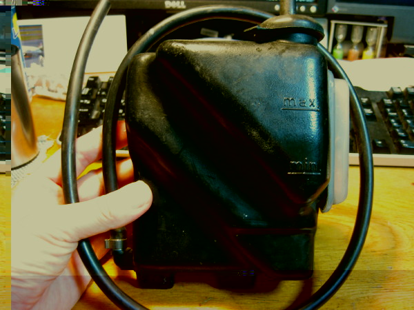 …汚れたこのタンクを交換しようと固く締まっているブーツバンドを苦労し切り落として