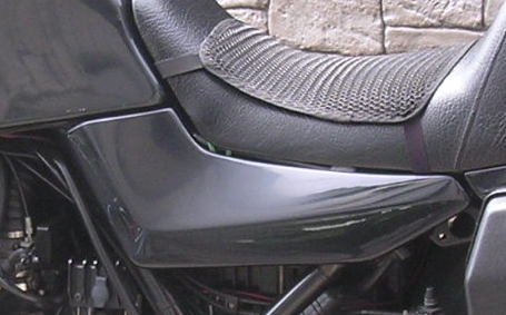 サイドカバーがないので探しているのですが、K100RS系のサイドカバーには2種類あるようですね。添付画像のもの。