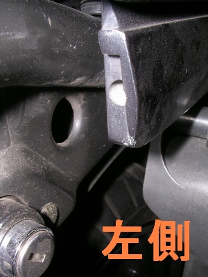 オフミの写真やらなにやら引っ張り出してみたところ、初期が左側、後期が右側のようです。ワタシのは4Vなので右側が適合なような気がするのですが、モトコのシングルシートについているサイドカバーは取り付け方が左側のタイプと同じです。