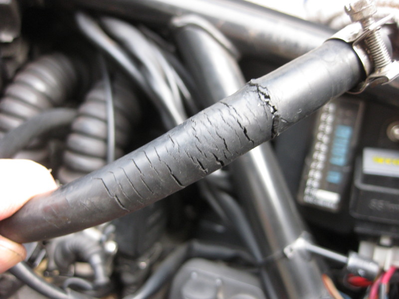 ボロボロになったホースはタンクからラジエータのすぐ後ろを通ってレギュレータに向かうホース(部番:13311461974)です。