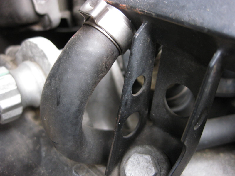ホースは、サージタンクとエアクリーナボックスに接触しているのが気になるところですが、どちらも樹脂なので、熱的には