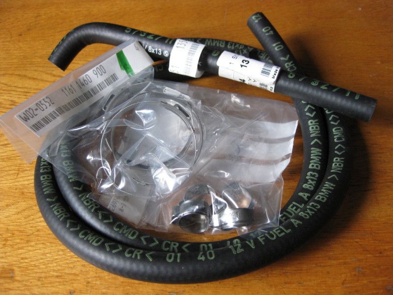 私の場合、レギュレータからインジェクションレールに向かうホース(下の写真 部番:13541461495 )もこのホースを使っている