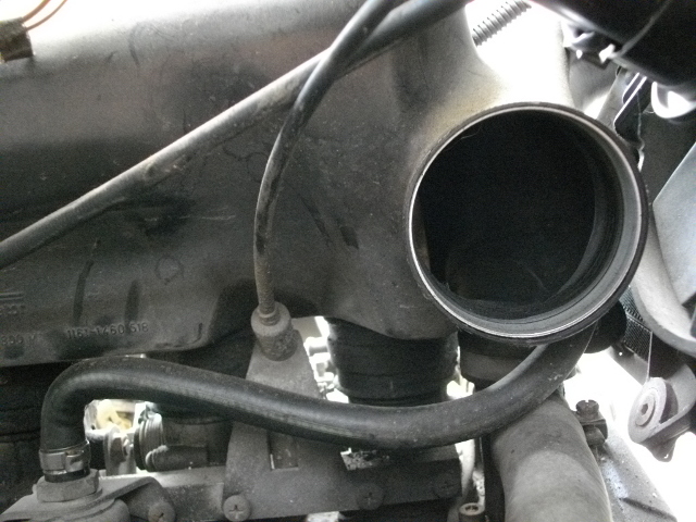 大径パイプの上を通る場合、ホースは、サージタンクとエアクリーナーボックスの間の谷間をとおることになりますが、