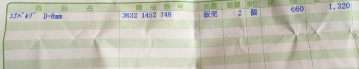 無事にエアバルブ入手しました。
