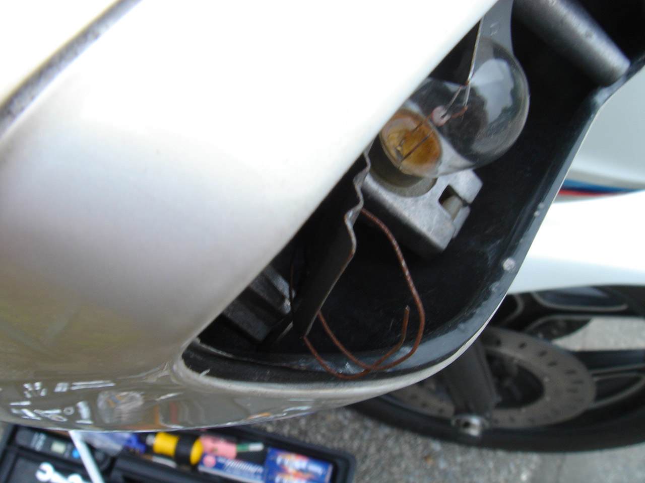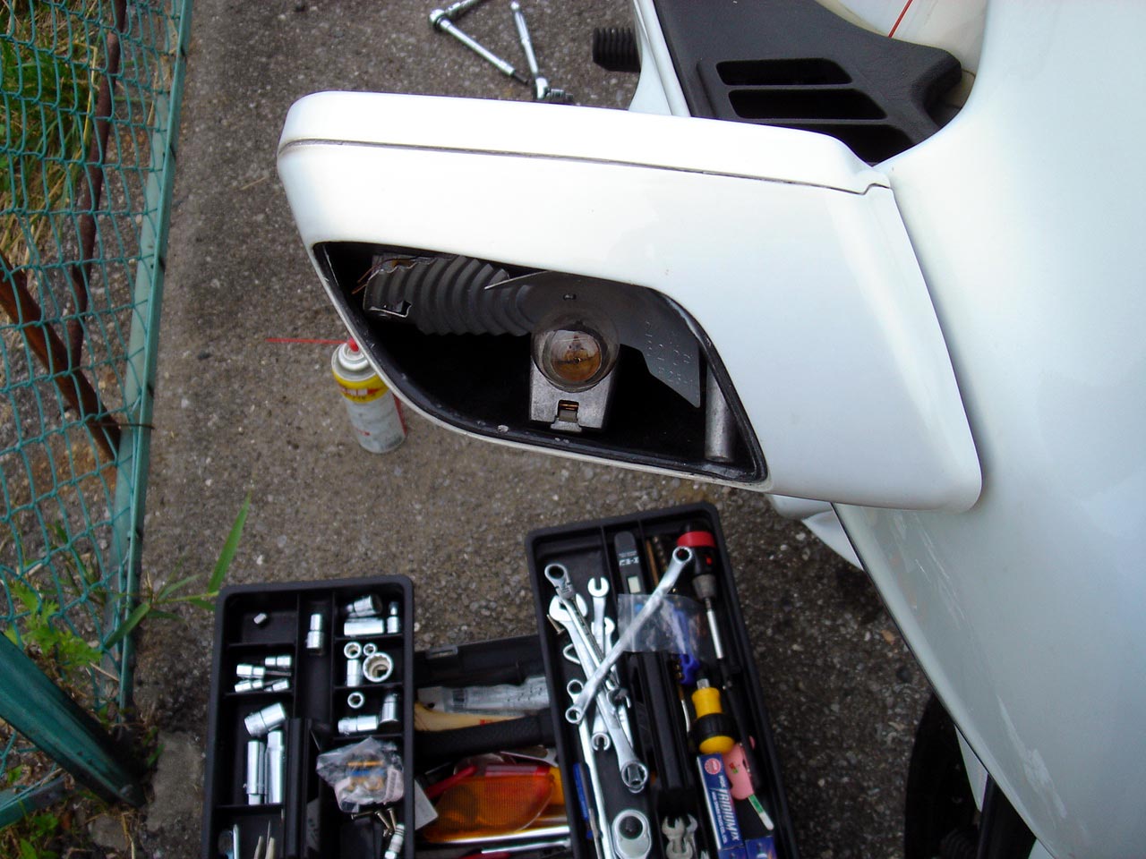 ウインカーレンズを外し反射板とミラーケースの間から先が細い