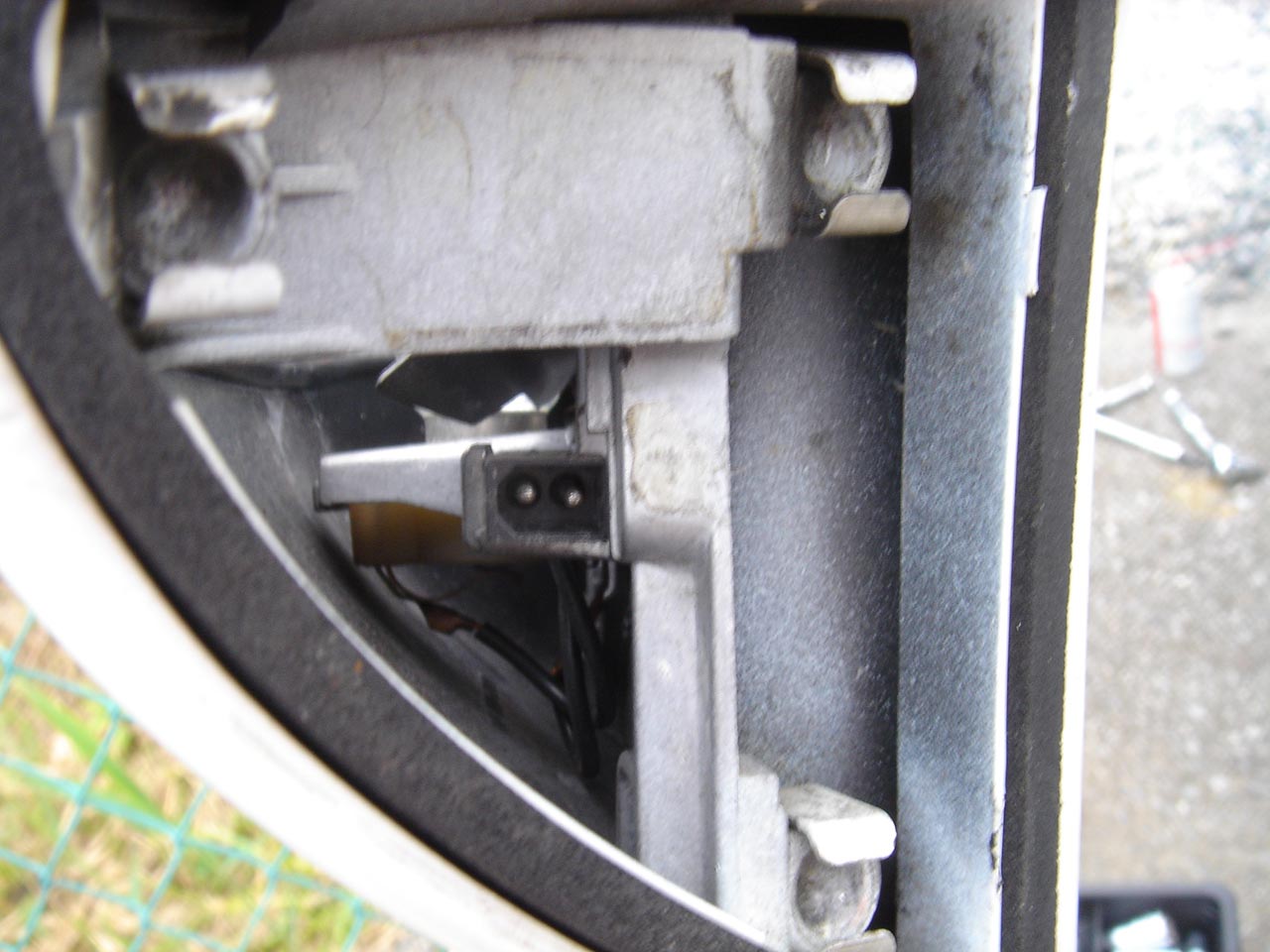 外して中を見た感じでは、ウインカーの反射板の裏にはダイキャスト製の固定用フレームが見えますが鏡側の仕組みは自分には窺い知れない状況です。