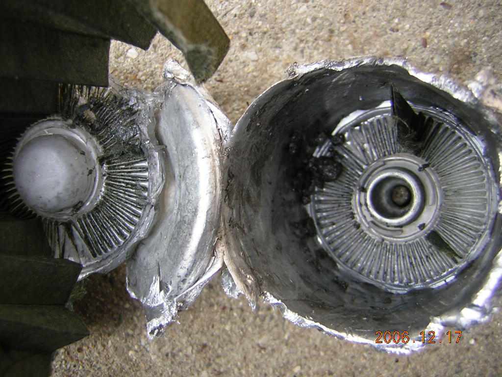 これではストレーナーとして機能不全ですのでそこからスレッジがそのままフィルターにいって先のような症状に繋がったと推測します。試しにフィルターの中身を観ると(かしめてあるので破壊)たっぷりスレッジが溜まっていました。ホースは02年製でしたがこの際なので交換しました。