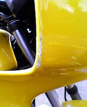 帰ってキズの確認をしたところ、カウルにはヒビ&削れ、シティーケースにも削れが見付かり、ショック大です。