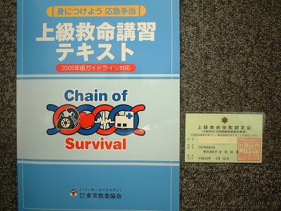 おお?っ救命講習ですね!しかも上級ではないですか!