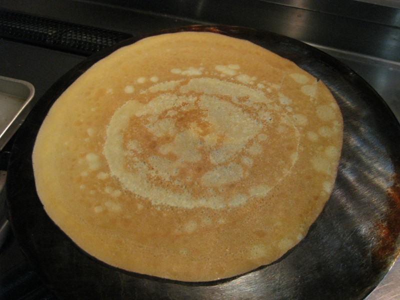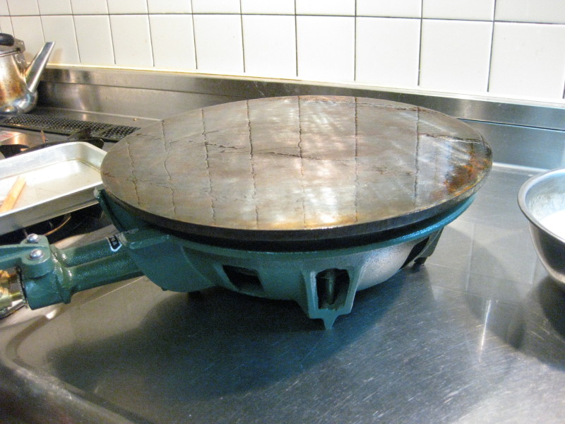 先日、やっとプロパン用のコンロ(火が二重のやつ)を購入。5KgのLPガスもレンタルして、本日焼いてみました。二重コンロは、きれいに焼けるだけでなく、1枚を焼く時間がこれまでの半分以上。1/3の20秒位です。このペースなら十分、商売になるスピードですね。