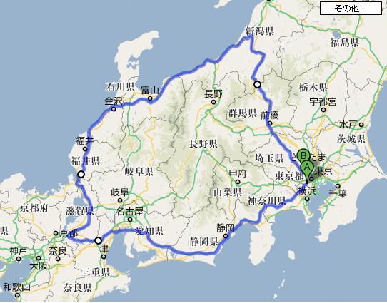 コースは東名-伊勢湾岸-東名阪-東名神-新名神-名神-北陸-関越の時計周りで、全行程1、145kmになります。原則的に高速を下車せずに走行となります。ルールは基本的に参加者が乗車したIC、SA、PAを0km起点として、本コースを時計周りにグルッと1周ということ。例えば、私が関越自動車道所沢ICから乗車したら、グルっと周回して関越自動車道川越IC(または起点の所沢IC)をゴール点としますし、しんきちさんが草津ICから乗車すれば本コースをグルっと周回して起点に戻るといった具合。