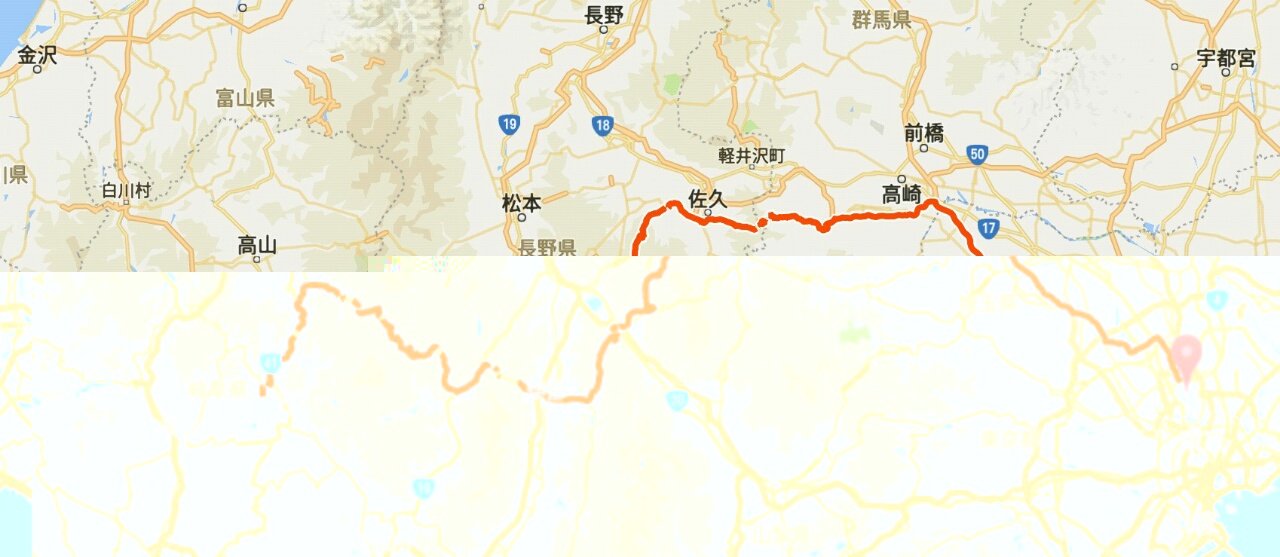 南回りは雨に遭いそうだったので開田高原~権兵衛~白樺湖~佐久~のルート、木曽福島からはカッパも脱いで最適でした。