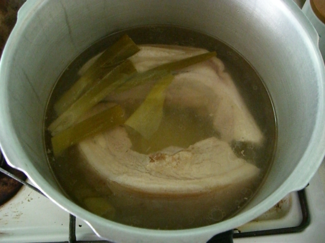 皮付き3枚肉を圧力ナベで加圧脂抜きして、現在熟成中だよ :lol: