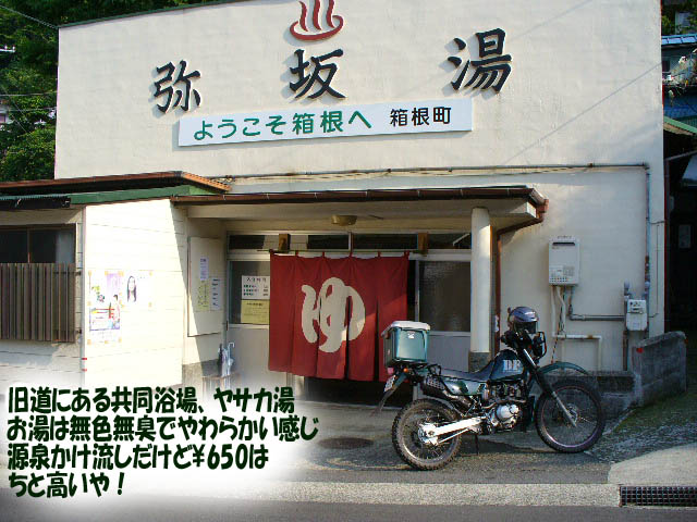 途中にどこに続くか判らない枝道への誘惑を必死で振り切り、以前から気になっていた箱根旧道の「弥坂湯」に入り、
