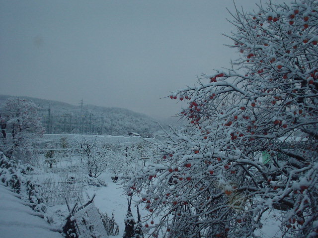 ついに来ました・・・昨晩「予報」通りの降雪、四輪は寒風降雨のなか昨日タイヤ交換?滑る前滑り込み完了。