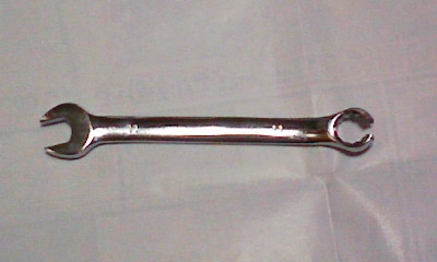 先日のRブレーキマスターシリンダーOHの時に、おがたさんよりフレアナットレンチを持って来て頂いたのが申し訳なく、「自分の手元にも!」と思い、色々探した末良い単品(11mm)が見付からなかったので、100均にてコンビレンチを買ってグラインダーにて自作してみました。