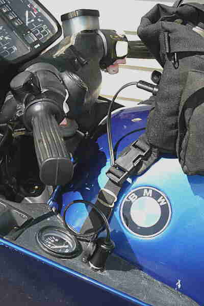 Falconさん、先日の東北2で気にしていただいたタンクバッグへの配電コードは