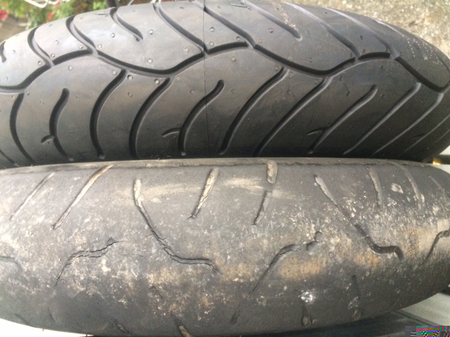 旧いタイヤには気を付けましょう。車体の初度登録は1995、車体番号から4Vの製造は1990頃