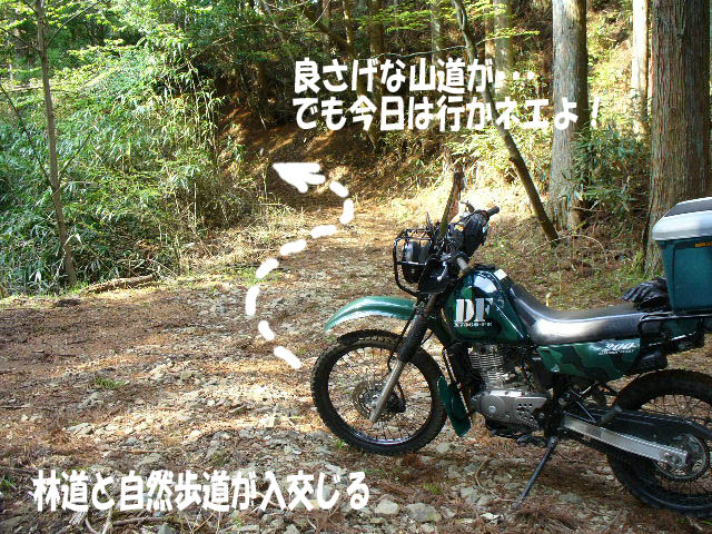 ふつふつと蘇り杉落葉が山中へと誘う。これぞ林道ツーリングの醍醐味!と分け入ったものの全て林道が木で鼻括った様な打ち切り終点。海馬のメモリーも当てにならんもんだ!まあ3年しか使ってないパソコンも時々記憶が飛ぶ位だから30年前の8ビットの記憶定かでないのは止むを得ないか!