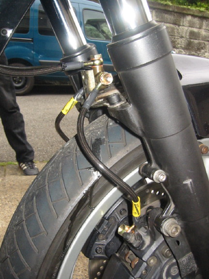 今回は、ハンドル・タンク下、ラジエータ上・三又下分岐、三又分岐・キャリパーx2の計4本を一気に交換しました。